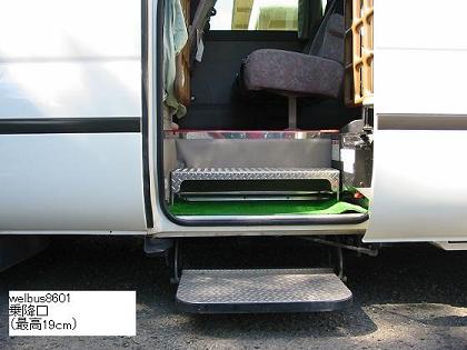 ウェルバスの乗降口は2WAY。 段差20cm+万能手すりで、着物の方も楽々。車椅子ユーザーは、後部床下収納リフトで楽々。